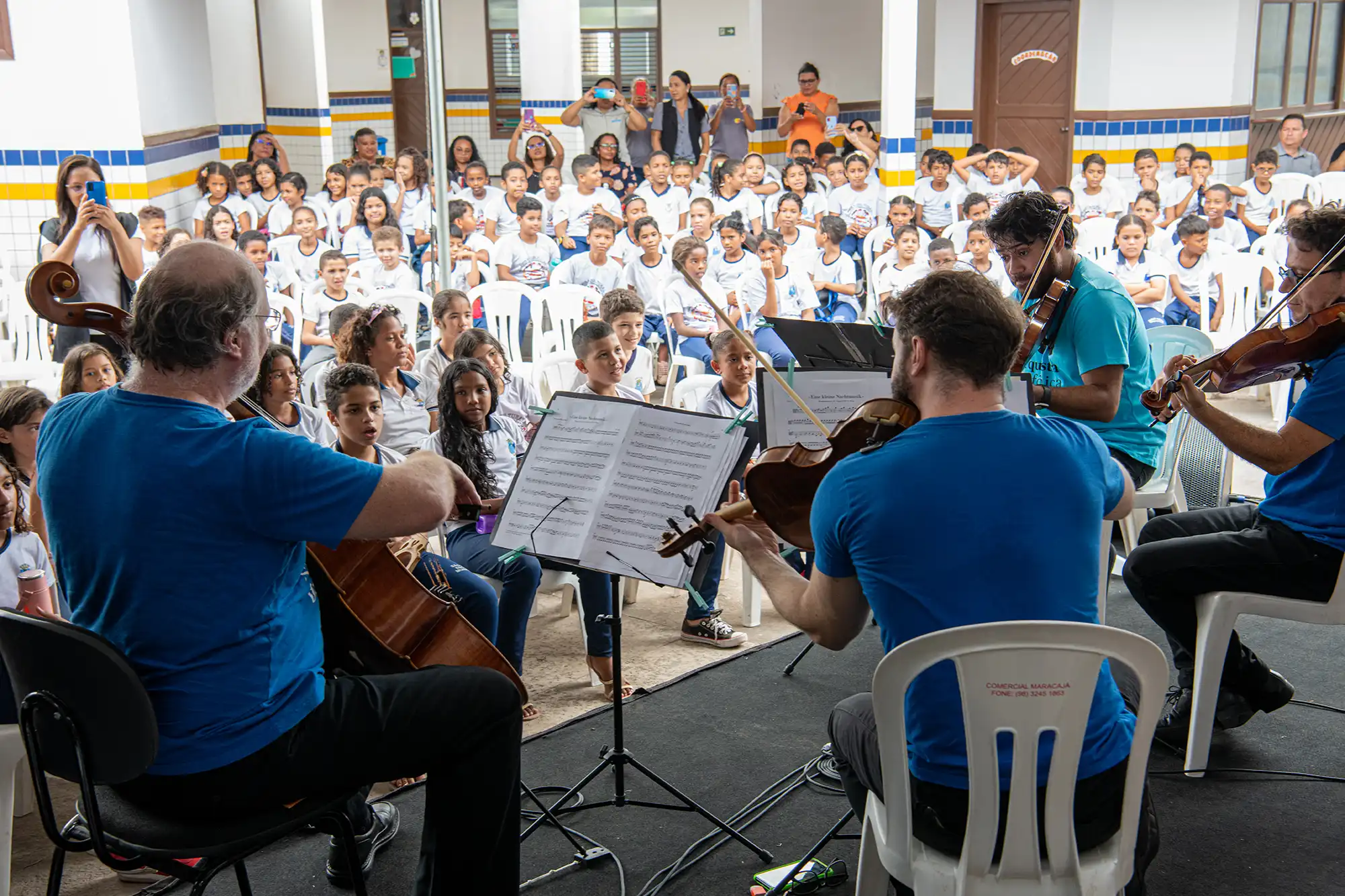 Em mais uma iniciativa que reforça a importância da democratização do acesso à música, o Conexões Musicais levou, entre os dias 1 e 6 de setembro, atividades educativas e artísticas como aulas de canto coral, concertos didáticos e capacitação para músicos locais em São Luís (MA). Ao fim dessas ações, fechamos de maneira excepcional nossa passagem pelo Maranhão com um belo e emocionante espetáculo no Teatro Arhur Azevedo, que contou com a participação de Coros das escolas de música Emem e Emmus, do quarteto de Cordas da OSB e da Orquestra Jovem João do Vale.